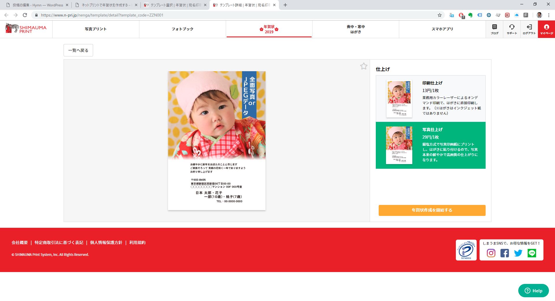 それがいつの間にか,裏面は富士フィルムやキタムラなど写真メーカーのサービスによる印刷が主流となってきた.さらに宛名も印刷してくれるようになった.ユーザーはただ裏面の画像データと宛名のデータベースをアップロードすれば済むようになった.
