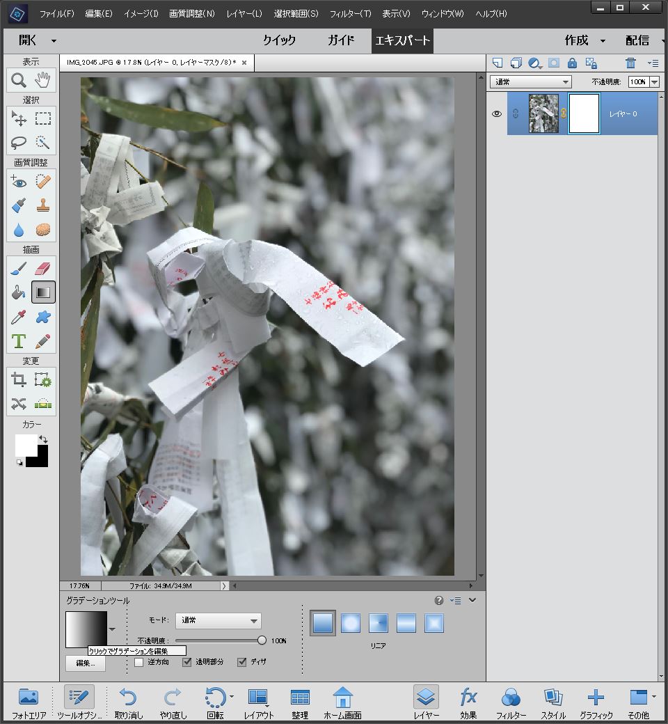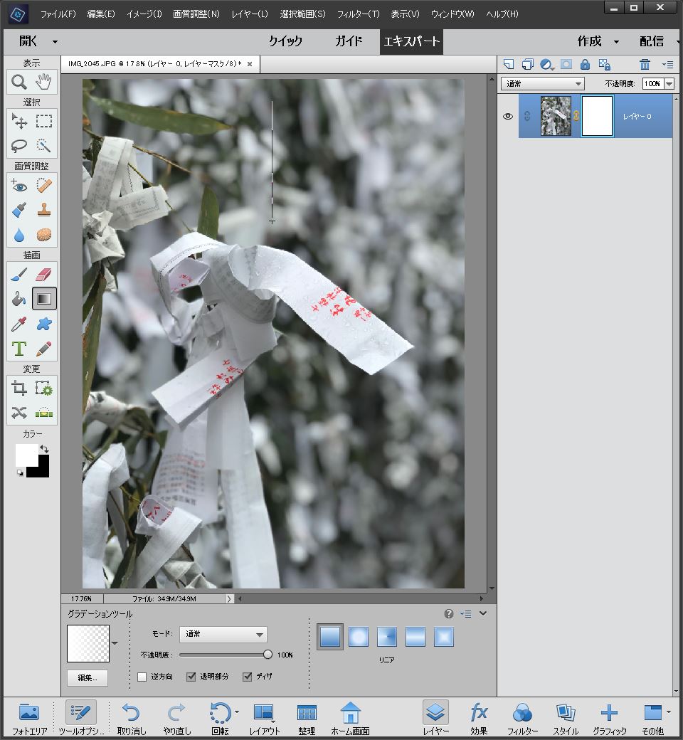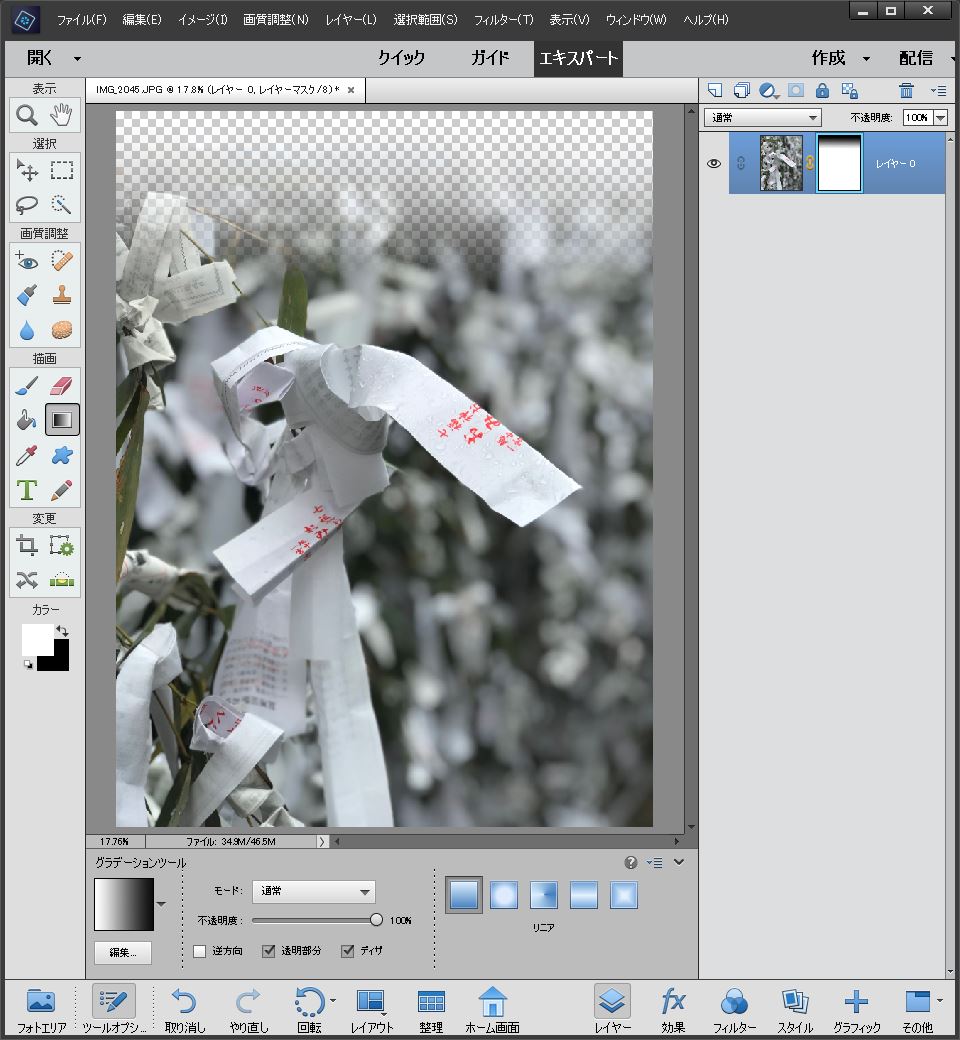 レイヤーマスクに透過グラデーションを適用する