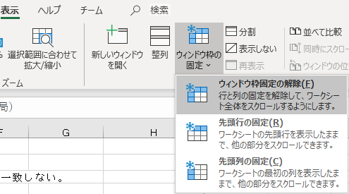 ウィンドウ枠は良かれと思って作成者が固定しておいたものだろう.データ抽出の邪魔になるため固定を解除する.