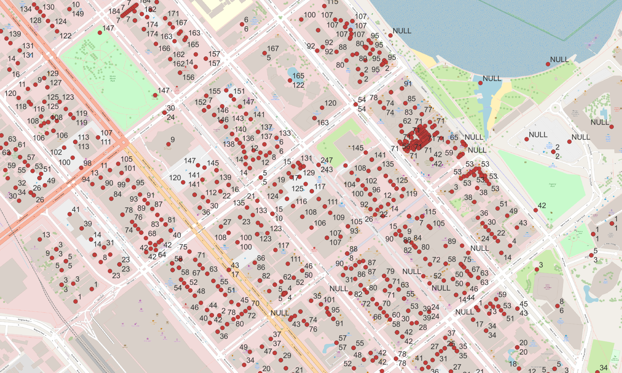 データ数は1500万件以上,空間参照系はGDA94(EPSG: 4283)またはGDA2020(EPSG: 7844)である.
