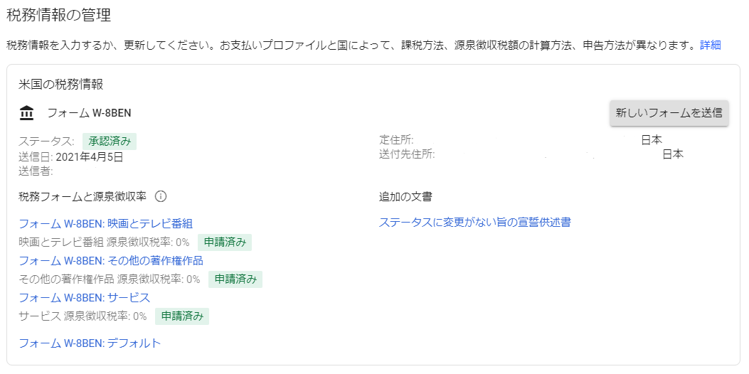 Google AdSense をこのブログで使用しているが,米国租税条約が適用されるため,フォーム W-8BEN から免除を申請した.